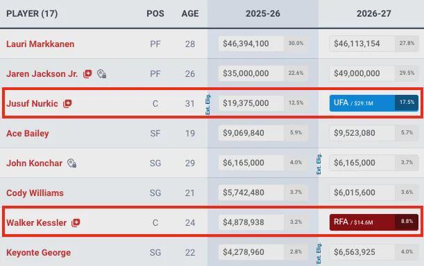 当然,考虑到薪资结构的平衡,爵士也许不会和31岁的努尔基奇续约,夏天留下将成为完全自由球员的努尔基奇难度也不小。